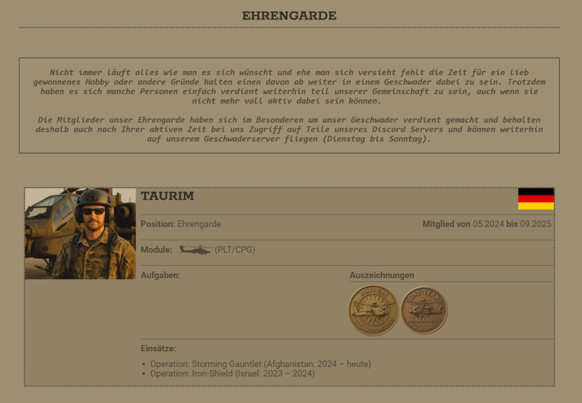 Nach weit über einem Jahr im Geschwader und fast einem Jahr im Command musste unser sehr geschätztes Mitglied Taurim seine Zeit bei uns leider vorerst beenden. Taurim war bei uns zum einen für die Liveries zuständig, hat aber auch das gesamte Membermanagement gerockt. Jeder neue Rekrut kam an ihm vorbei und wurde von ihm bei uns willkommen geheißen. Taurim, vielen…
